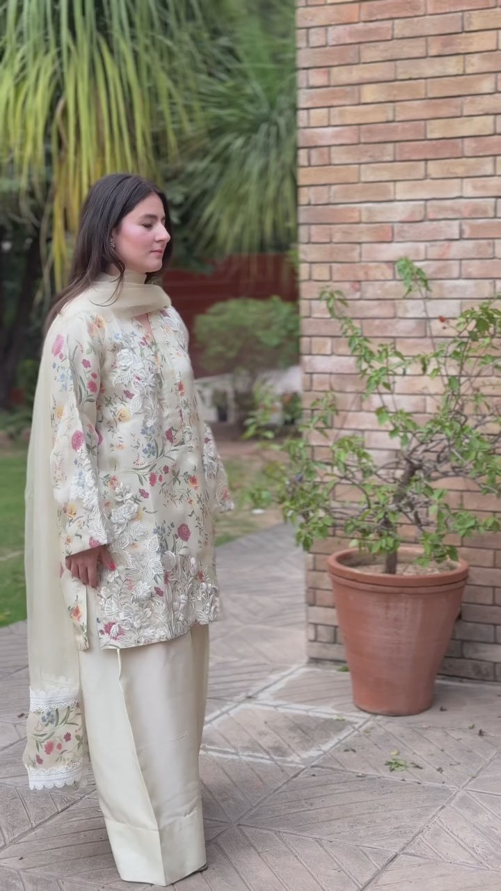 Gulroz is a stitched 3-piece lawn embroidered dress featuring intricate sequin and tilla work. The outfit includes heavily embroidered trousers in a farshi shalwar style, paired with an organza embroidered dupatta adorned with matching sequin and tilla detailing. Perfect for making a statement every day, this ensemble transitions effortlessly from daytime elegance to nighttime glamour, making it ideal for your everyday look.
