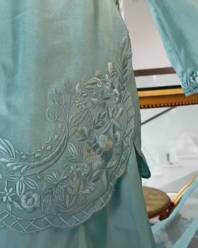 Shirt: Silk with Embroidery (Neckline & U-Shape Daman)